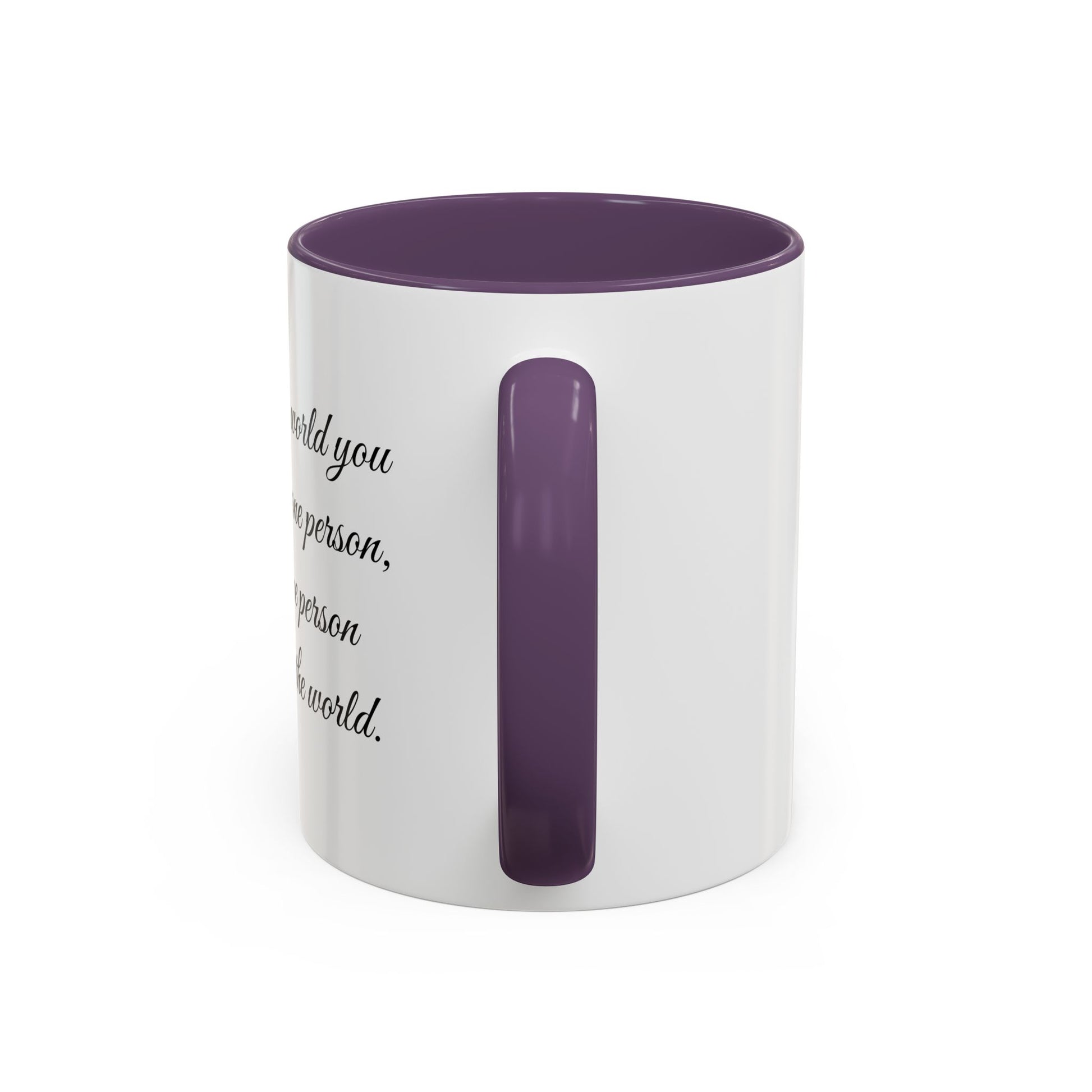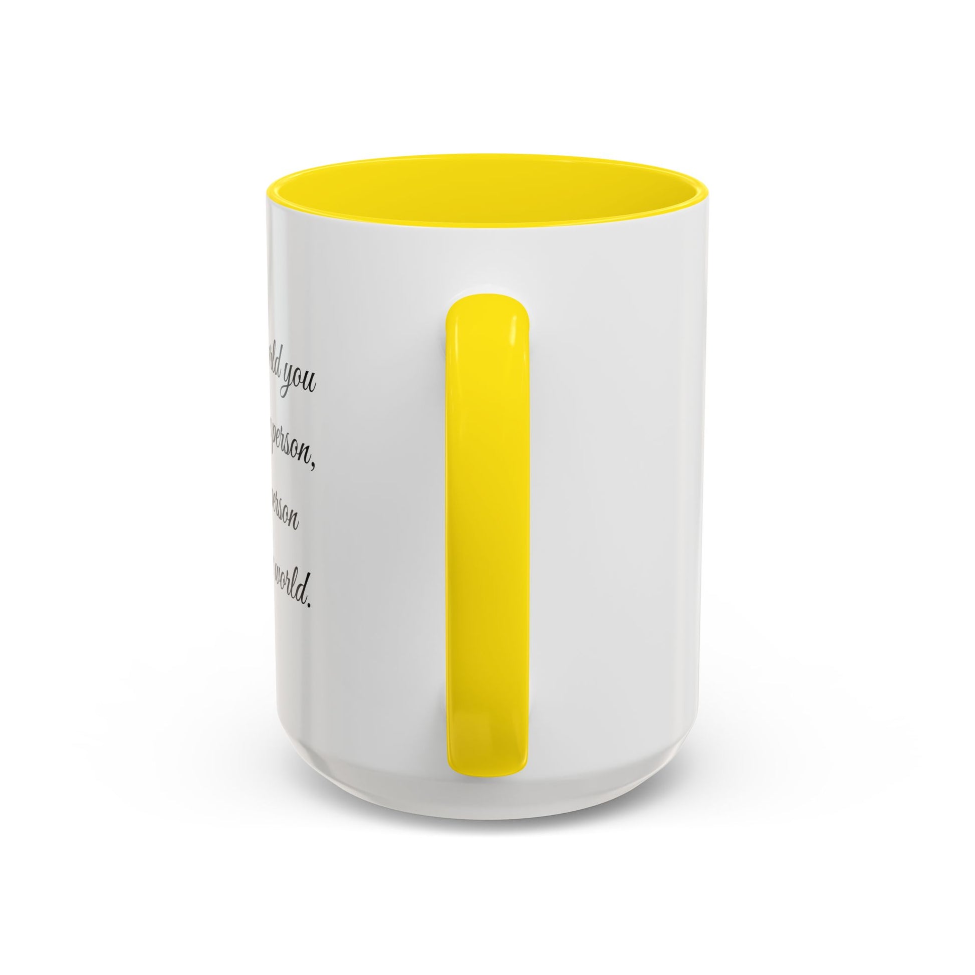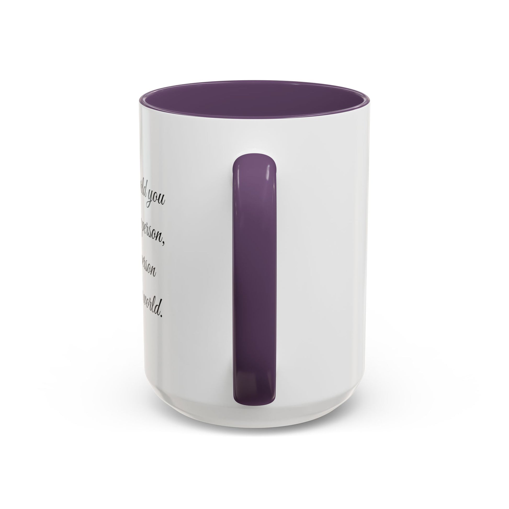 This ceramic accent mug brings quiet warmth to morning coffee and late-night tea. The contrasting colored interior and handle add a subtle pop, while the graceful script quote wraps around the mug like a whispered reminder — you matter to someone. It feels right on a cluttered desk, cradled in both hands during a slow morning, or given with a note to a partner, parent, or friend. The glossy finish and crisp printing keep the message readable and elegant day after day. Choose 11oz for a neat cup or 15oz when you need an extra pour. Dishwasher and microwave safe for everyday rhythms.