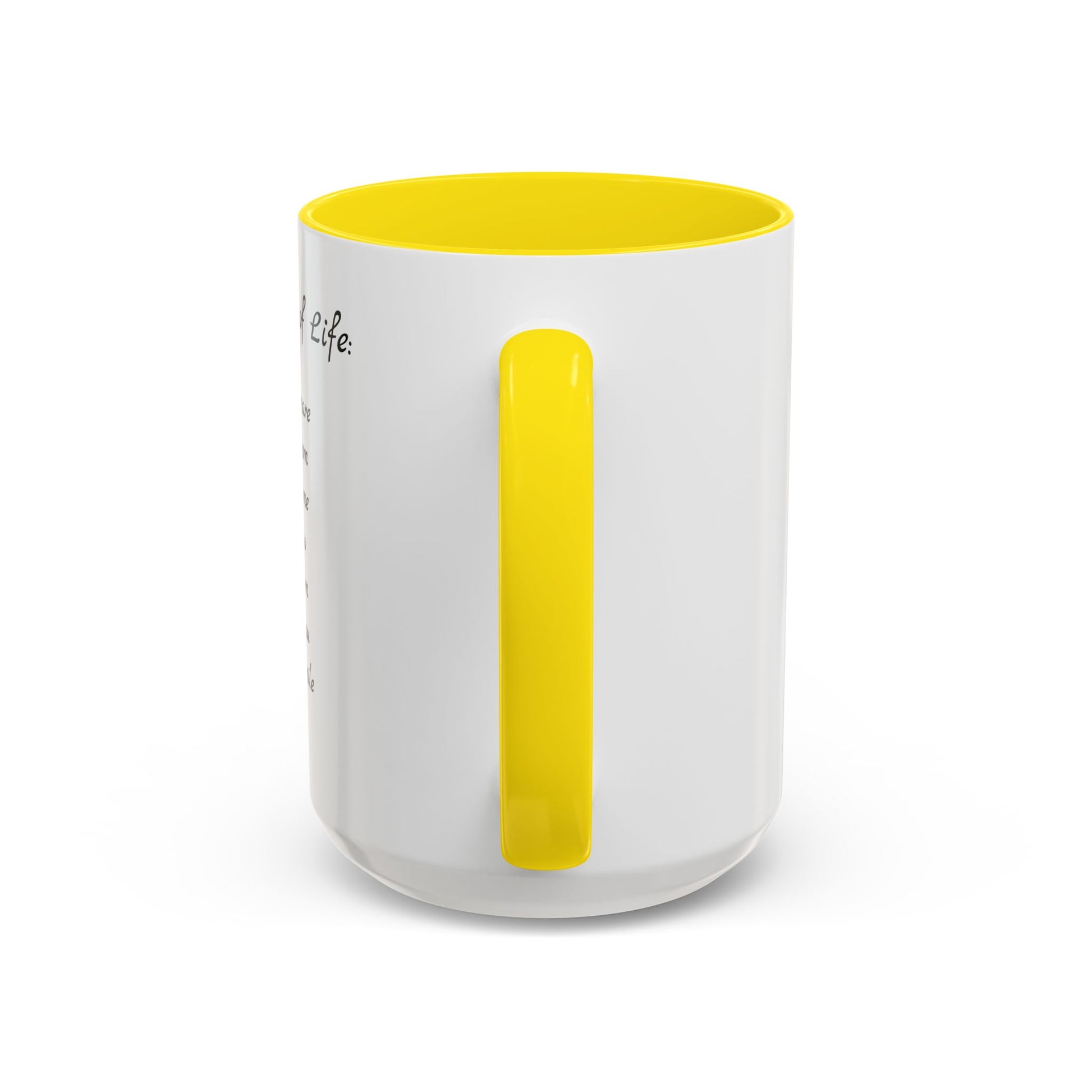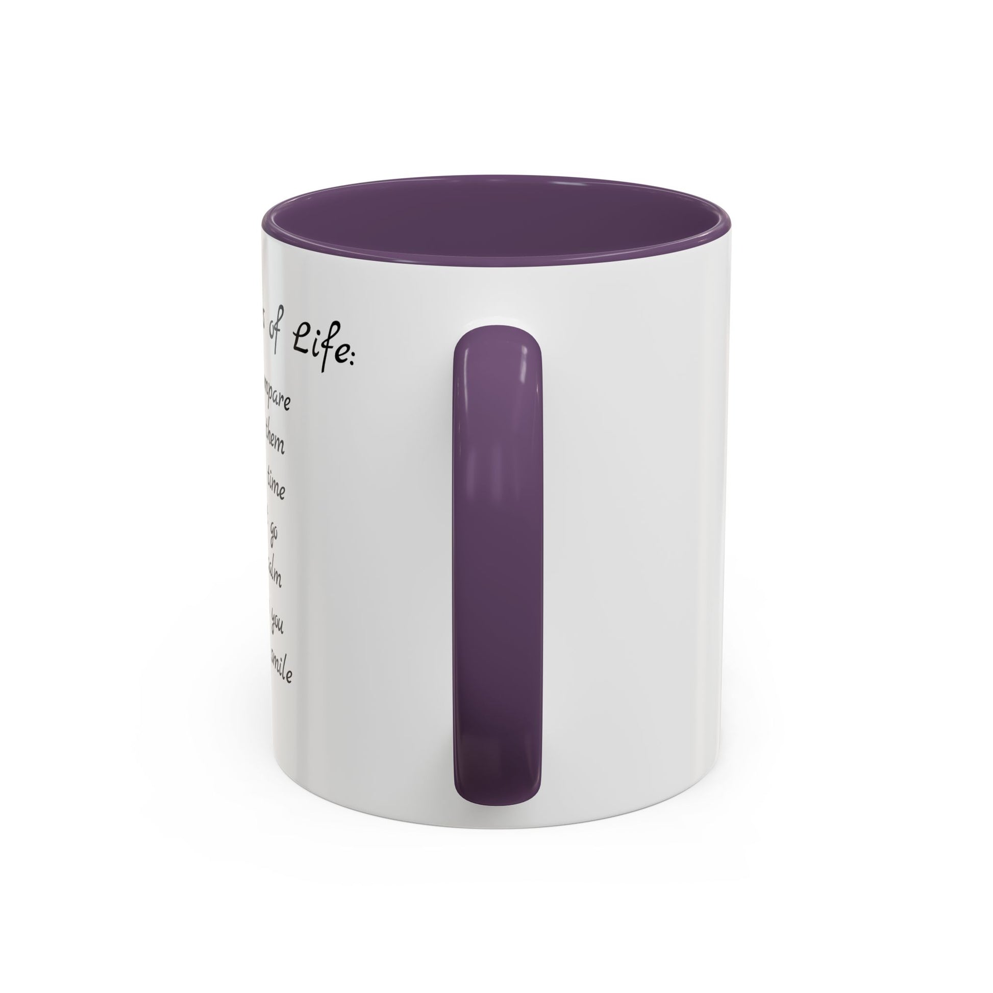 Sip slowly and read the little reminders. This glossy ceramic mug pairs a crisp white exterior with a bold colored interior and handle, making the simple, handwritten “Seven Rules of Life” poem feel like a quiet morning mantra. Each rule sits like a gentle nudge — don’t compare, give it time, stay calm — that fits right into a cluttered desk, bedside table, or kitchen counter. The weight and C-shaped handle make it comfortable for long coffee pauses, and the vibrant printing keeps the script clear and soft on the eyes. It’s the kind of cup that returns you to steady breathing and small, intentional moments throughout the day.